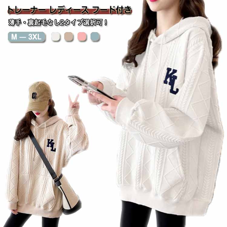 薄手 裏起毛 トレーナー レディース フード付き パーカー 長袖 スウェット エンボス加工 ジャージ トップス 春 秋 冬 プルオーバー ゆったり 軽い 暖かい 個性 大きいサイズ
