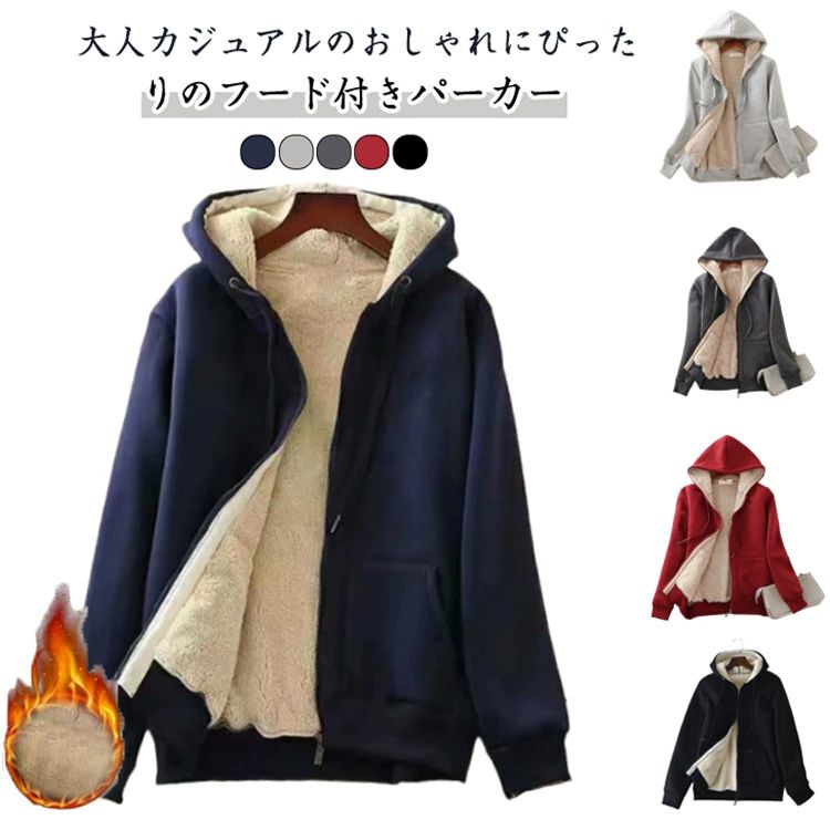 トップス パーカー 裏起毛 ジップアップパーカー ボアパーカー 長袖 無地 冬 ジップ 防寒 スウェット 裏ボア 極暖 あったか アウター フード付き ブルゾン 厚手 秋冬 暖かい 部屋着 もこもこ