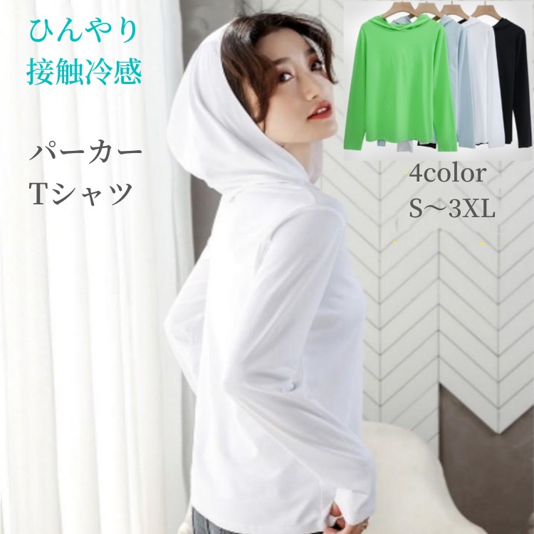 接触冷感生地 プルオーバー パーカー シャツ レディース 長袖 おしゃれ 春夏秋 涼しい カットソートップス フード付き シャツ 女子 アメカジ 無地 新作 スポーツ レジャー 送料無料