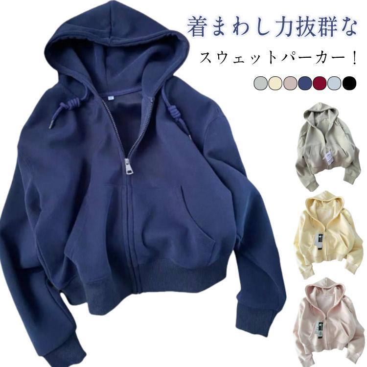 無地 トレーナー ジャケット ショート丈 レディース パーカー 長袖 トップス パーカー カジュアル ジップアップ フード付き 薄手 ゆったり スウェ