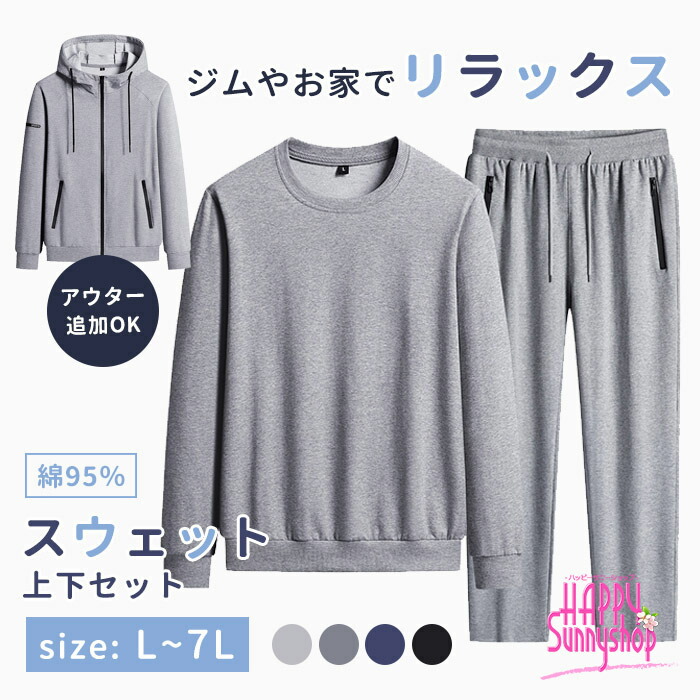 ゆったり快適で毎日着たくなる一着。おうち時間から外出まで使える万能スウェットセット。大きいサイズ対応でストレスフリーな着心地を実現。