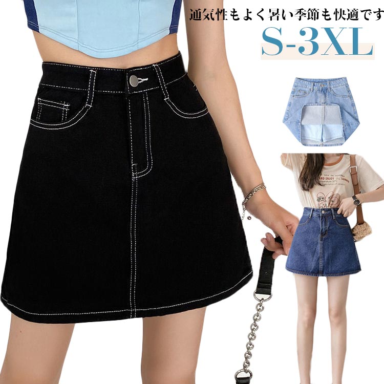 デニムスカート レディース インナーパンツ付き 接触冷感 ミニスカート ライン 着痩せ ハイウェスト 美脚 薄手