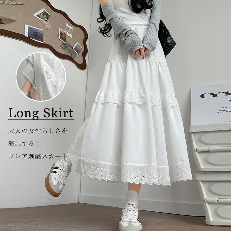 スカート ロングスカート フレアスカート レディース 綿 刺繍入