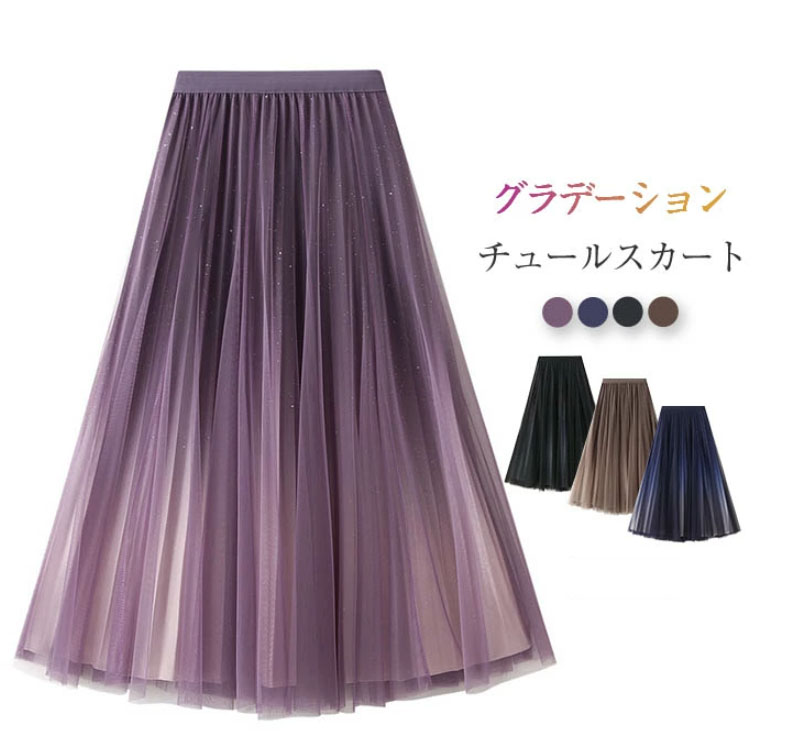お呼ばれ チュールスカート レディース ロングスカート フレアスカート ボトムス ウエストゴム 春 夏 秋 ふんわり 裏地付き ミモレ丈 スカート ボリューム キレイめ