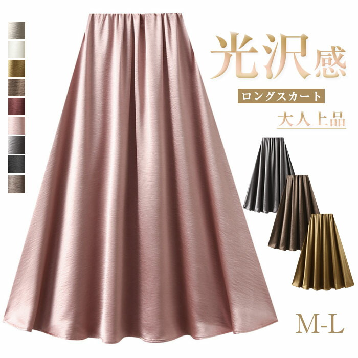 ロングスカート サテン ふんわり Aライン 光沢感 フレアスカート ボリューム感 プリーツスカート ロング丈 ミモレ丈 レディース 無地 ハイウエスト 体型カバー おしゃれ キレイ目 体型カバ 可愛い