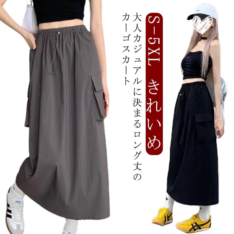 カーゴスカート スカート レディース ボトムス ロング タイト ナロースカート ストレート 大人 カジュアル きれいめ ウェストゴム