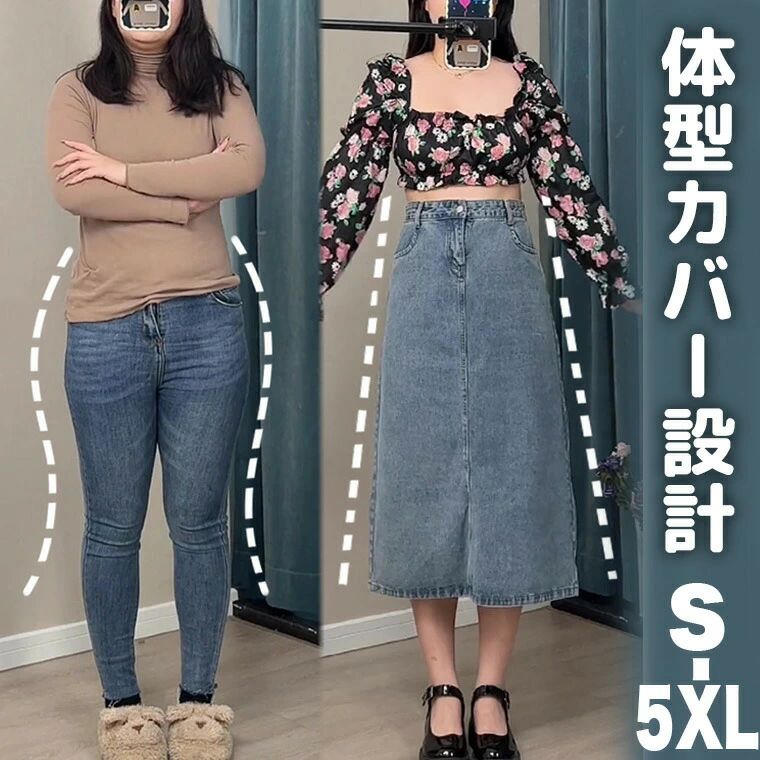 下半身をすっきり見せるデザイン 体型カバー 着やせ デニムスカ