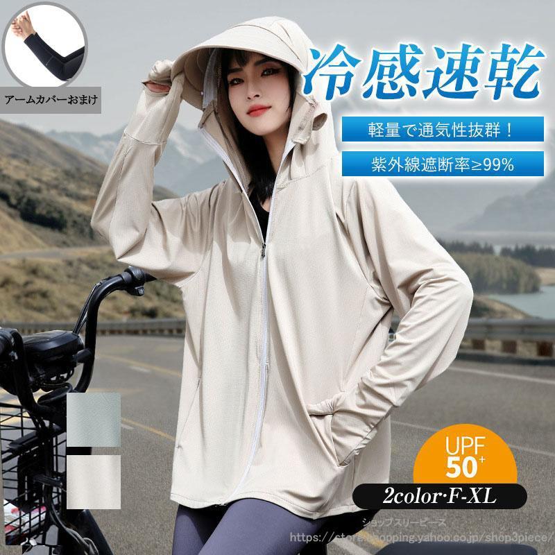 レディース 日焼け止め服 ラッシュガード アウター パーカー 体型カバー ケア カット 紫外線対策 冷房 アウトドア用 フード付き 接触冷感