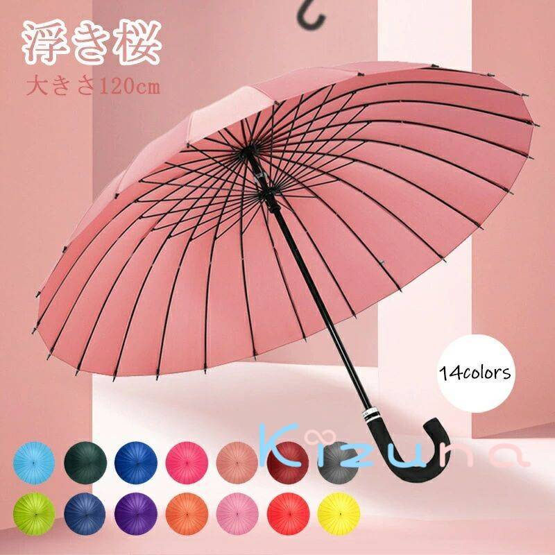 長傘 大きい傘 傘 レディース 高強度24本骨傘 120 浮き桜 日傘 軽量 かわいい バンブー ハンドル おしゃ