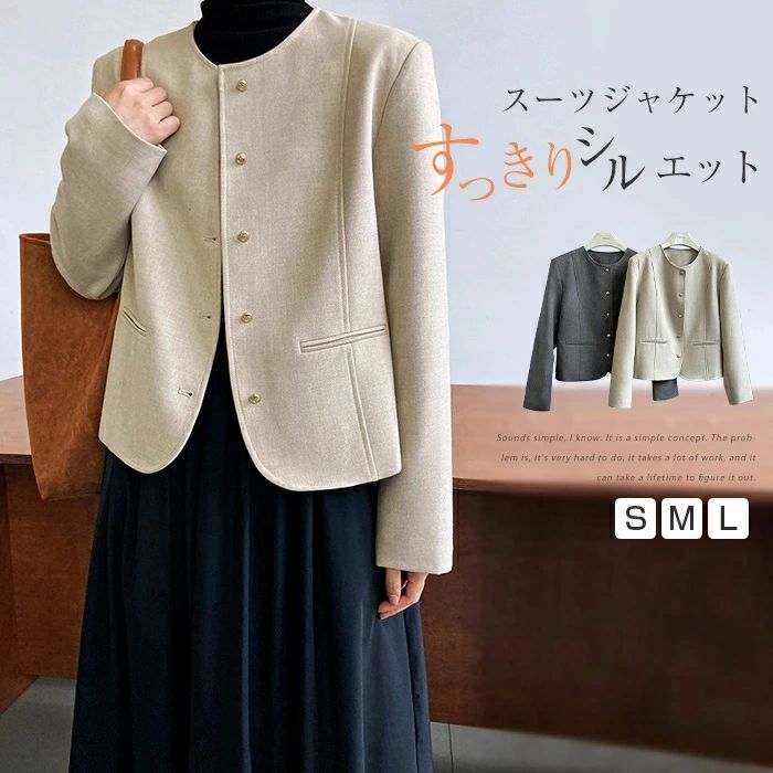 スーツジャケット レディース 春秋 アウター スーツ 上着 大人ジャケット フォーマル ツイード ノーカラー おしゃれ きれいめ シンプル トレンド オフィス カジュアル OL ビジネス お呼ば 気質
