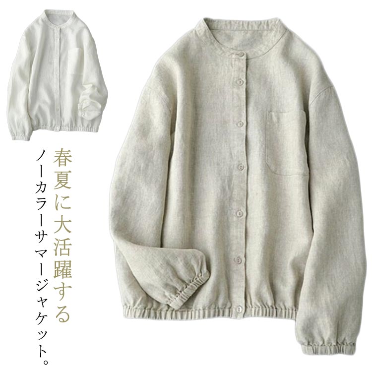 無地 シャツブラウス レディース シャツジャケット ジャケット 冷房対策 綿麻風 ノーカラー リネンジャケット ショート丈 カーディガン 羽織り 紫外線対策 サマー ライトアウ 長袖