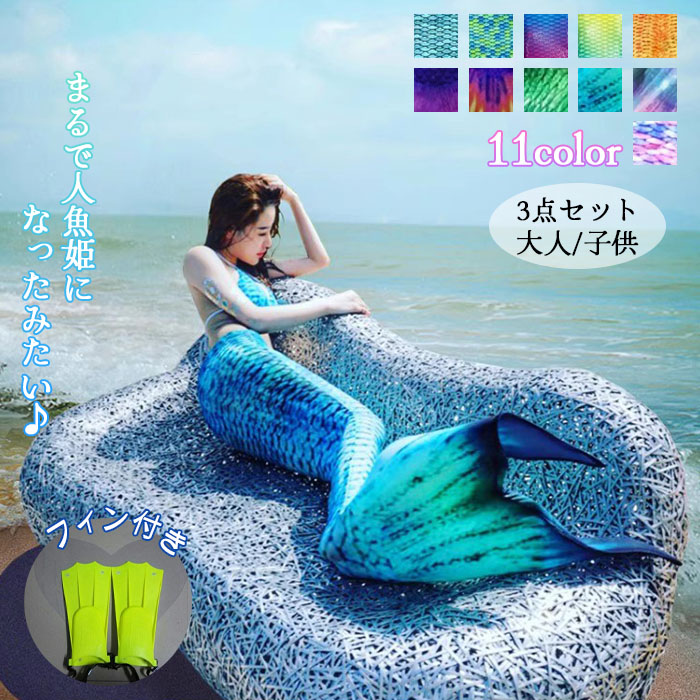 マーメイド 水着 レディース キッズ 人魚 姫 ビキニ フィン付き コスプレ 仮装 ハロウィン 海 プール 撮影 衣装 セクシー 11色 110 120 130 140 160 170 180 150