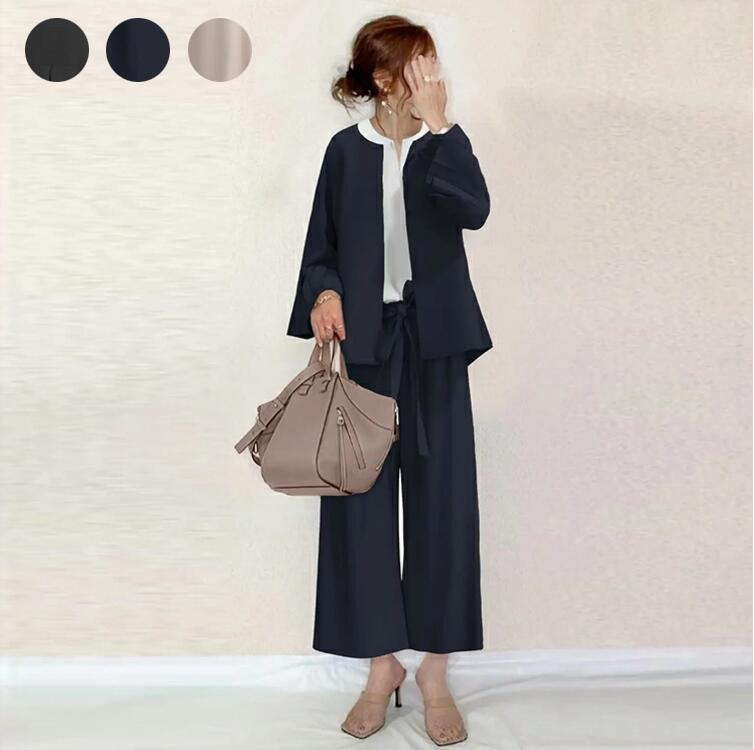 パンツスーツ レディース セットアップ 3点セット L-5XL ワイドパンツ スーツパンツ かっこいい ゆったり 大きいサイズ ママコーデ きれいめ