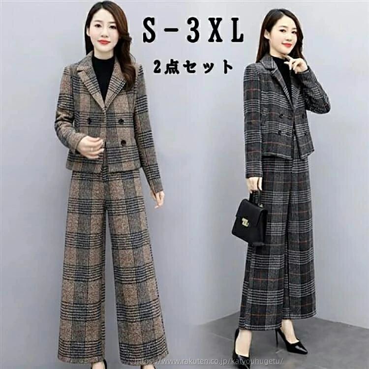洗える ビジネススーツ 女性 大きいサイズ フォーマル セットアップ ワイドパンツ 入園式 卒学式 スーツ パンツスーツ 通勤 チェック柄 秋冬 レディーススーツ レディース