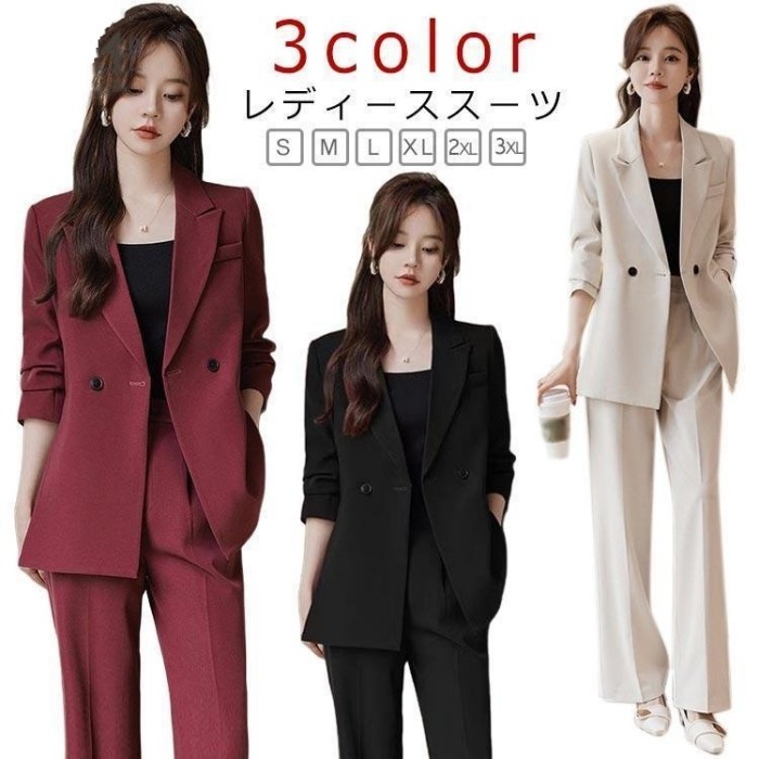 レディーススーツ 4色 2点セット 無地 長袖 ジャケット+パンツ ビジネス スリムスーツ おしゃれスーツ ビジネススーツ 2ピーススーツ パンツスーツ セレモニースーツ 1つボ S~5XLママスーツ