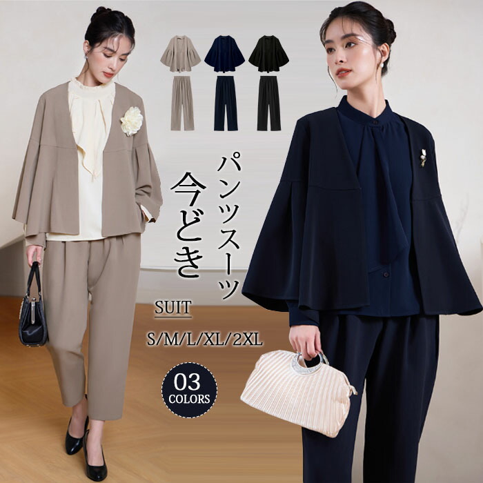 2024年最新スーツ レディース セット 2点セット 卒業式 スーツ 母 30代 40代 洗える 着回し フォーマル テーパードパンツ 入 ノーカラー
