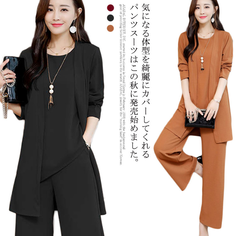 レディース パンツスーツ セットアップ ママスーツ パンツ スーツ 入学式 入園式 ブラックフォーマル オールインワン ママ 3点セット セレモニースーツ 黒 卒業式