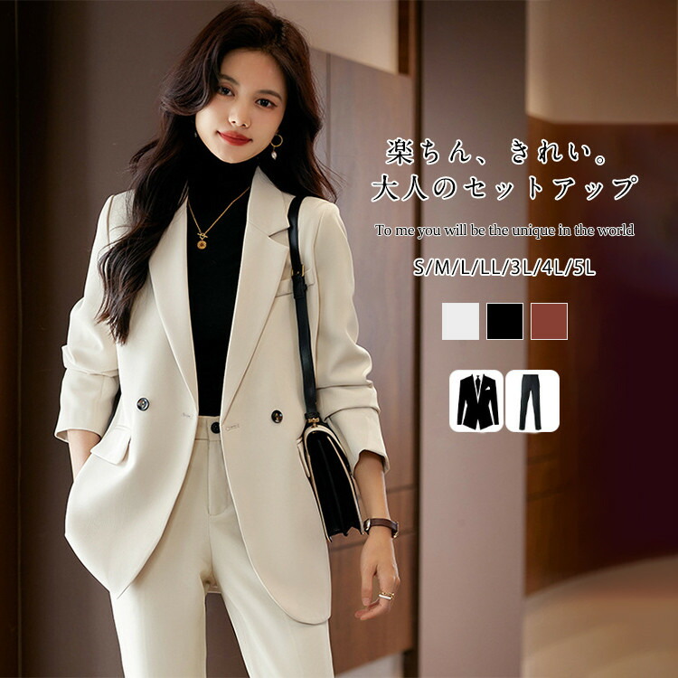 白 黒 パンツスーツ スーツ レディース セットアップ ビジネススーツ 洗える 2点セット ジャケット 大きいサイズ フォーマル 面接 オフィス 入学式 母の日 七五三 お宮参り ビジネス ママスーツ