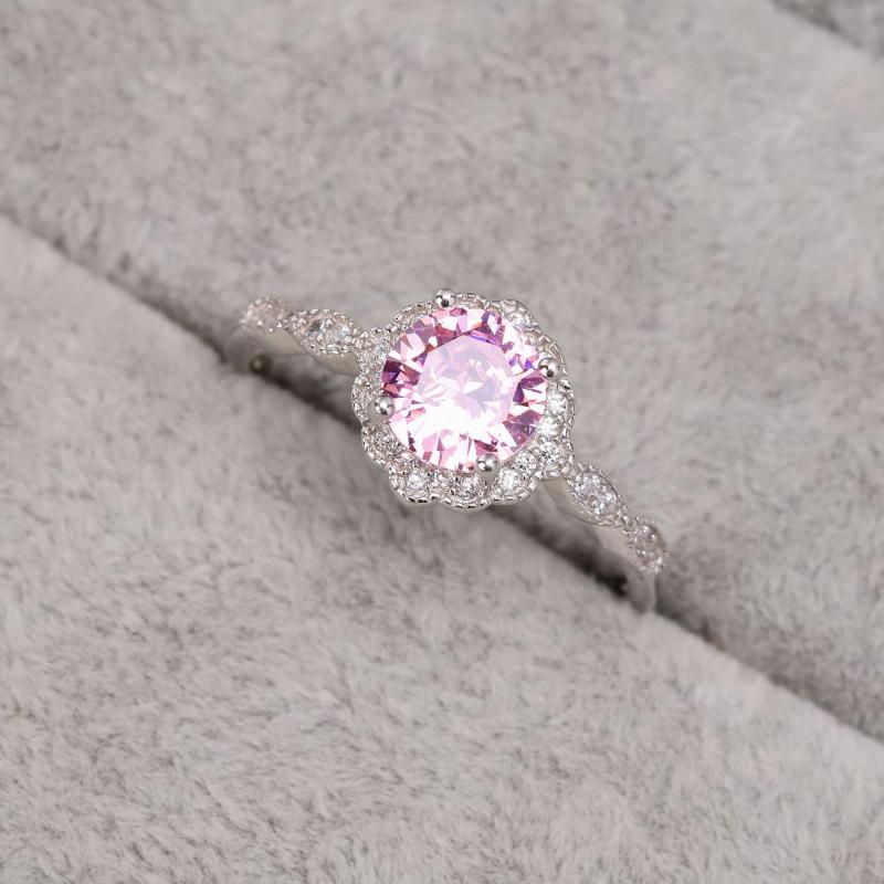 レディース 指輪 ピンク ジルコニア 開口 リング シンプル 丸形 プロポーズ 婚約 スタイリッシュ ジュエリー 女性用 アクセサリー ファッション