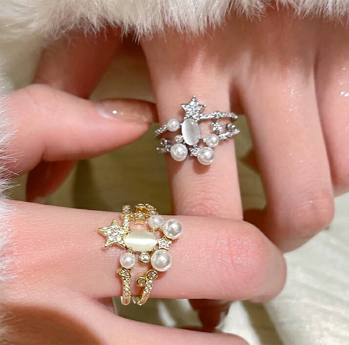 パール×キラキラ リング パールリング ゴールド ゴールドシルバー フォーマル 上品 アクセサリー