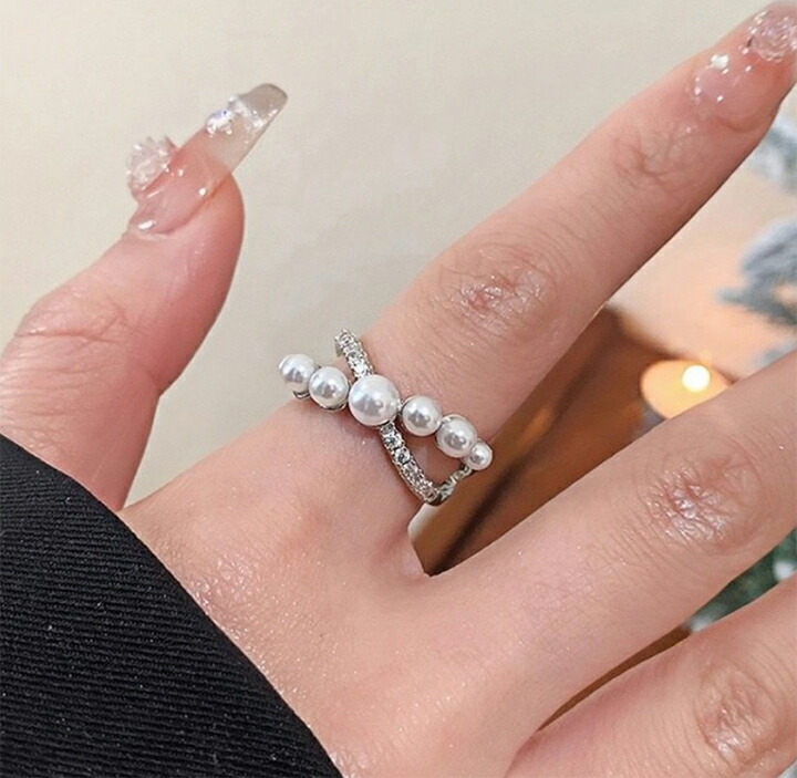 パールストーンクロスリング パールリング 指輪 華やかリング パーティー 結婚式 プラスチックパール 大人かわいい デイリー パールアイテム