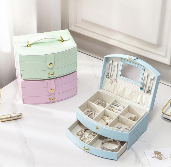 大容量収納でピアスやネックレスもすっきり整理 ミラー付きで使いやすく可愛いデザインのアクセサリーボックス