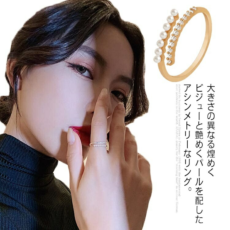 レディース ベビーパール フリーサイズ調整可能 金属アレルギー対応 ラップリング 淡水パール 7粒パールリング 指輪