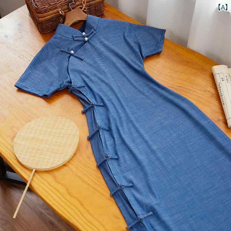 チャイナ ドレス レディース レトロ サマー ワンピース お呼ばれ 普段使い デニムブルー 夏 女の子 大人っぽい おしゃれ エレガント ファッション きれいめ