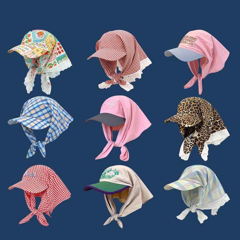 女性用 帽子 アメリカン ヘッド スカーフ 一体型 キャップ ダックビル ハット 春夏 日焼け防止 チェック柄 ストリート おしゃれ かわいい ヒップホップ