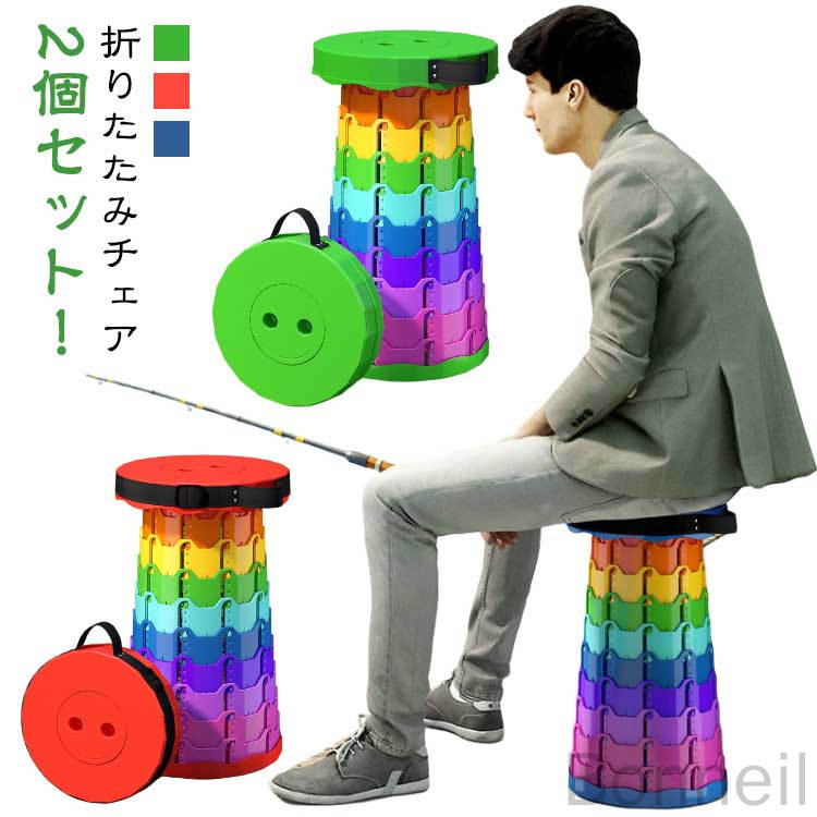2脚セット 伸縮スツール 折りたたみ椅子 アウトドアチェア 子供 大人用 マルチチェア 折りたたみ 椅子 携帯 踏み台 行列待ち用 イス 簡易チェア コンパクト ゴルフ観戦 キャンプ 釣 持ち運び便利