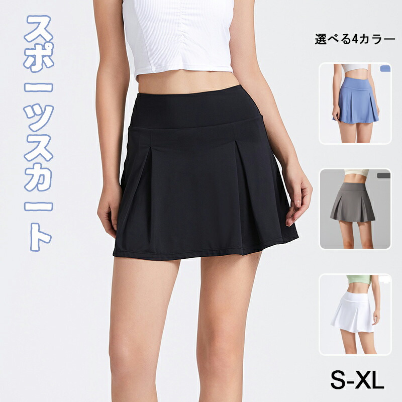 スポーツスカート レディース ゴルフスカート 長め テニススコート 大きいサイズ プリーツ 着痩せ 通気ヨガ インナーパンツ付き ゴルフウェア 運動着 日常服 可愛い 夏