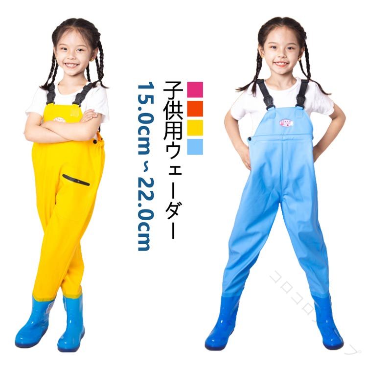子供用 キッズ ウェーダー 胴付き 長靴 防水 軽量 ポケット付き 雨具 雨の日 梅雨 通学 アウトドア 水遊び 釣り 潮干狩り