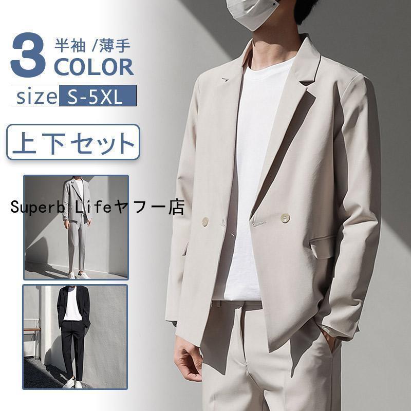 セットアップ メンズ 長袖 長ズボン カジュアルスーツ ファション 30代 20代 ウォッシャブル 通勤 細身 在宅 卒業式 夏 オフィス