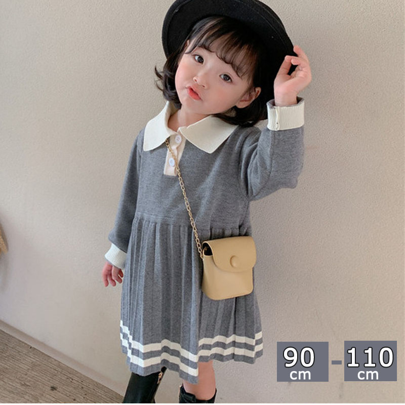 入園式 女の子 ワンピース きれいめ 春秋冬 入学式 ベビードレス プリーツワンピース ニットワンピース ポロ襟 長袖 ライン入りワンピース 上品 きちんと感 子供服 子ども 祝い 赤ちゃん キッズ