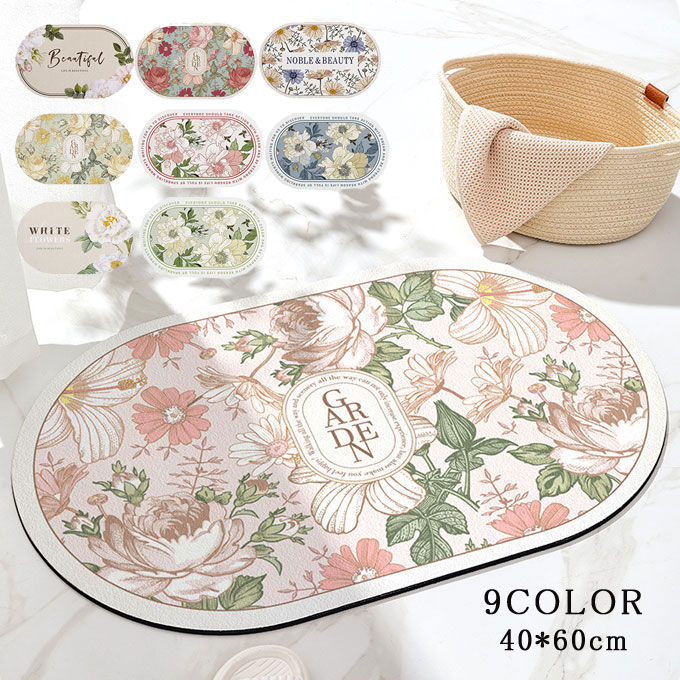 バスマット 玄関マット 楕円形 室内 風水 洗える ラグマット 花柄 約40*60cm すべりにくい 北欧 屋内 脱衣所 洗濯室 マット 吸水 速乾 抗菌 お風呂 足ふきマット 新築祝い 防臭