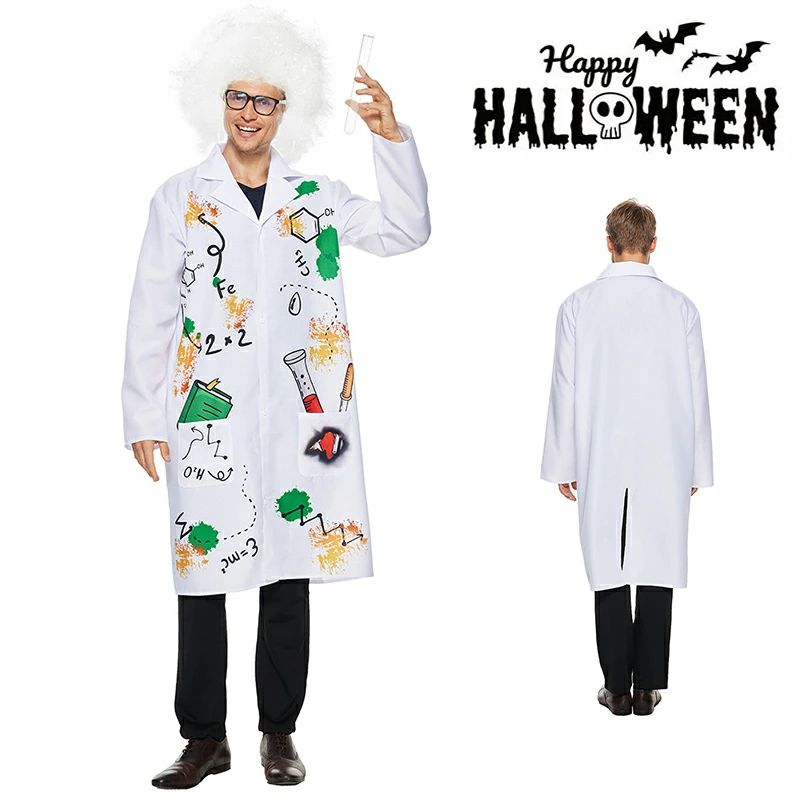 ハロウィン コスプレ 面白い おもしろ 科学者 博士 コスチューム コート+白ウィッグです