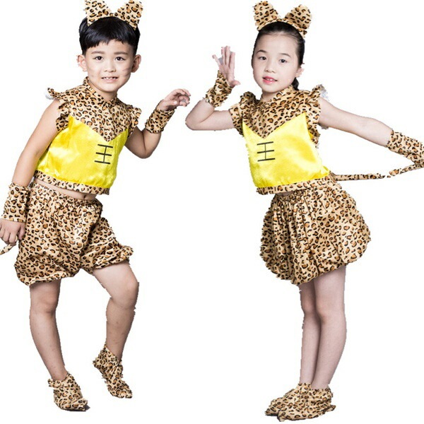 ハロウィン 仮装 子供 コスプレ コスチューム 公演服 女の子 男の子 5点セット コスプレ衣装 髪飾り 豹柄 110 120 130 150 160 170 140