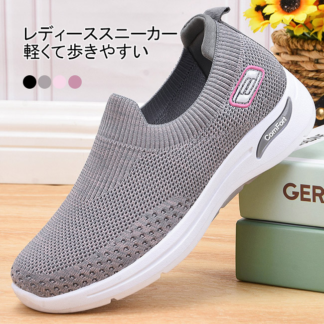スニーカー シューズ レディース ニット ウォーキング 防滑 防摩耗 蒸れない メッシュ カジュアル おしゃれ 快適 フィット 軽量 通学 通勤 ジム スリッポン ランニング