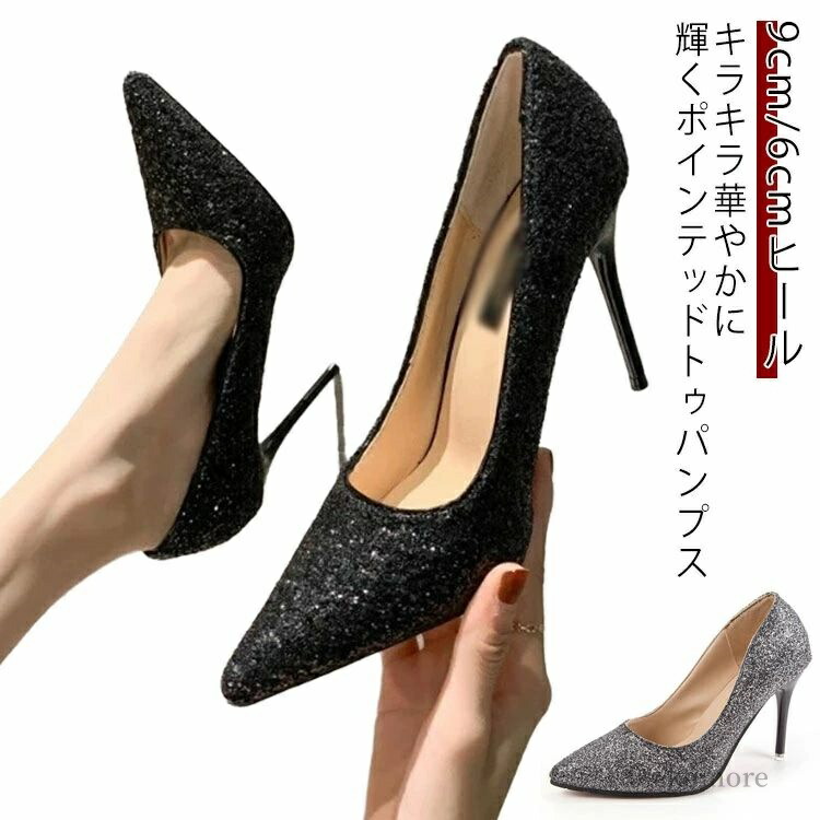 パンプス ポインテッドトゥパンプス キャバ嬢 ブライダルシューズ 美脚パンプス 小さいサイズ シューズ ハイヒール ラメ