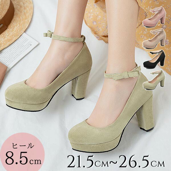 パンプス リボン付き 厚底 ロリィタパンプス ヒール8.5 太いヒール チャンキーヒール 小さいサイズ ストラップ 甘ロリ ロリータ ガーリー ラウンドトゥ 女の子 ピアノ 発表会 可愛い レディース