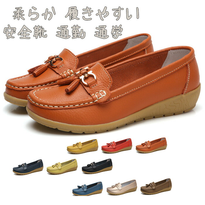 レディース モカシン ローファー パンプス フラットシューズ スリッポン サンダル 本革 柔らか 履きやすい ママシューズ コンフォート厚底 カジュアル ドライビングシューズ 安全靴 ナースシューズ