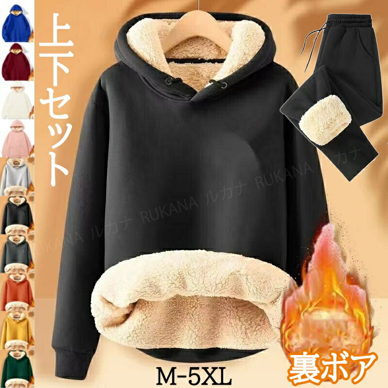 パーカー セットアップ メンズ スウェット 上下 冬 裹起毛 ボア ジャージ アウター ロングパンツ フード付き 冬服 部屋着 冬用 厚手 ルームウェア カジュアル 大きい 防寒
