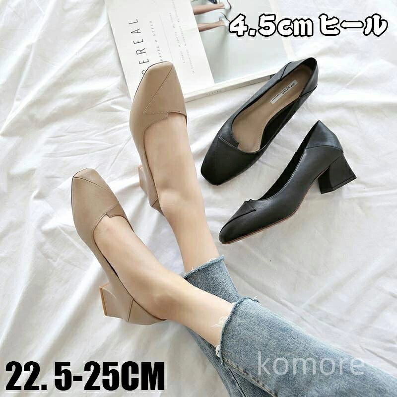 楽 足が痛くならないパンプス 疲労 スクエア スクエアトゥ ローヒール フォーマル 黒 4.5cmヒール 痛くない 歩きやすい ブラック