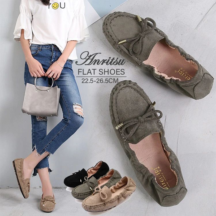 22.5-26c カーキ グレー かわいい クッション性 痛くない スウェード 歩きやすい おしゃれ 靴 ぺたんこ レザー フラットシューズ