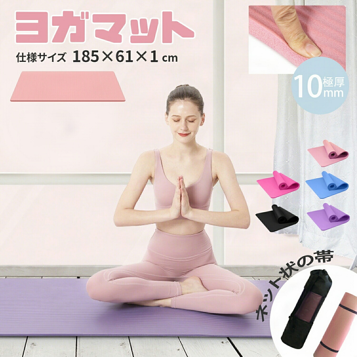 ヨガマット 厚手 厚さ10mm 高密度 子供用 収納袋付ヨガマット NBR 素材 ヨガ ヨガワークス エクササイズマット フィットネスマット トレーニングマット カーペット 自宅 小 ラグ