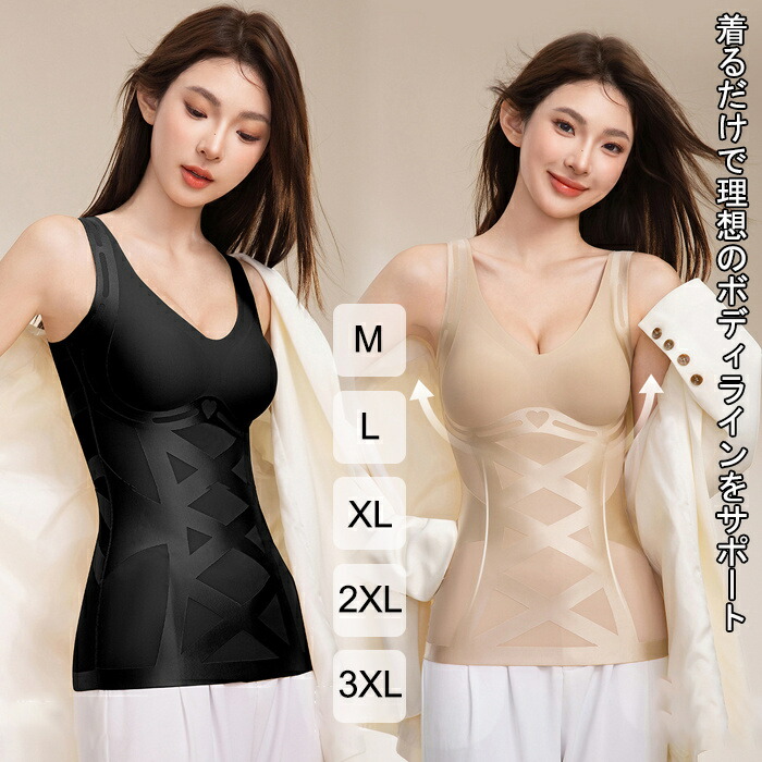 加圧インナー レディース 天使の羽パネル姿勢サポートタンクトップ美バストxお腹くびれx脇肉フラット姿勢補正 補正下着 着圧ブラトップ 加圧タンクトップ 着けるだけで24ボディメイク