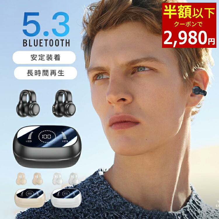 完全ワイヤレス ワイヤレスイヤホン クリップ型 左右分離 耳かけ 耳挟み 軽量 高音質 通話可能 bluetooth iphone プレゼント 瞬間接続 快適 耳掛け式 ヘッドホン 小型 音漏れ防ぐ