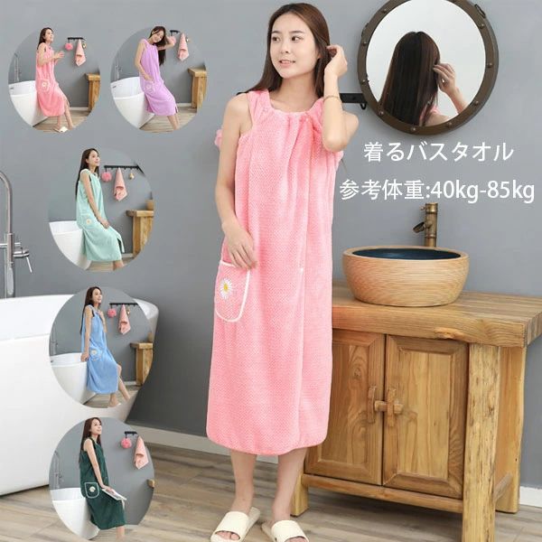 着るバスタオル レディース バスタオル バスローブ 大判 キャミソールワンピース ポケット付 吸水タオル 可愛い 花柄刺繍 吸水 速乾 母の日 お風呂上り ルーム 旅行 海水浴 温泉 プレ スイミング