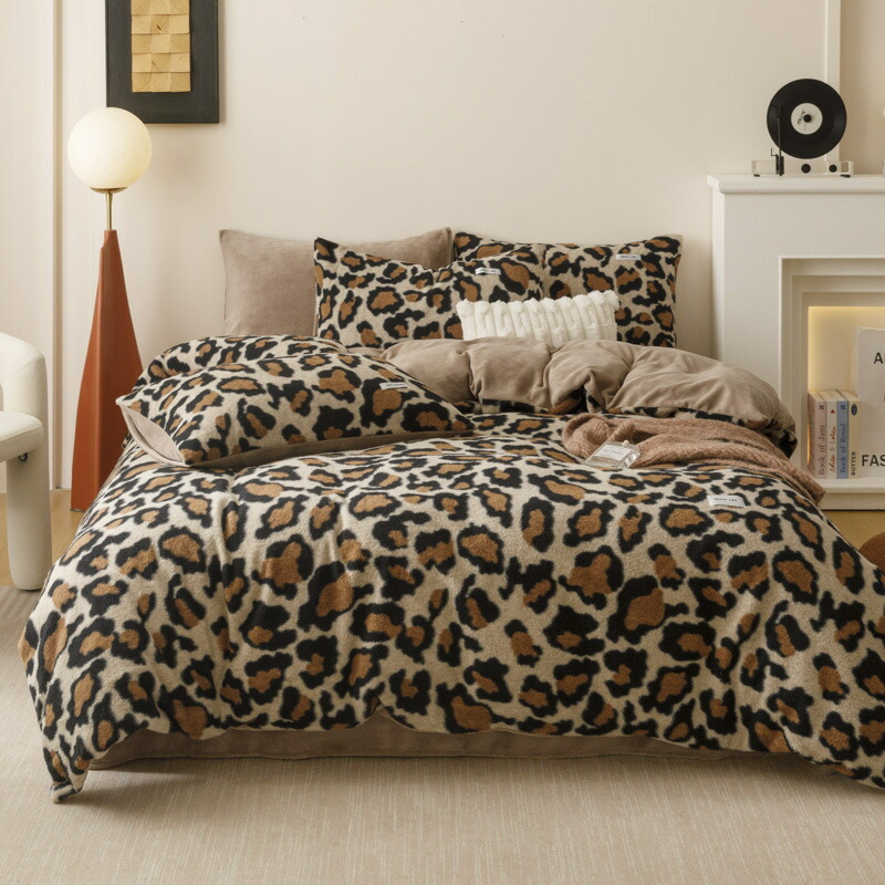 寝具カバーセット 北欧風 ヒョウ柄 高級感 可愛い 冬用 厚手 暖かい ふわふわ シングル ダブル 3点4点セット フランネル フラットシーツ/ボックスシーツ 掛けカバーセット ベッド用品