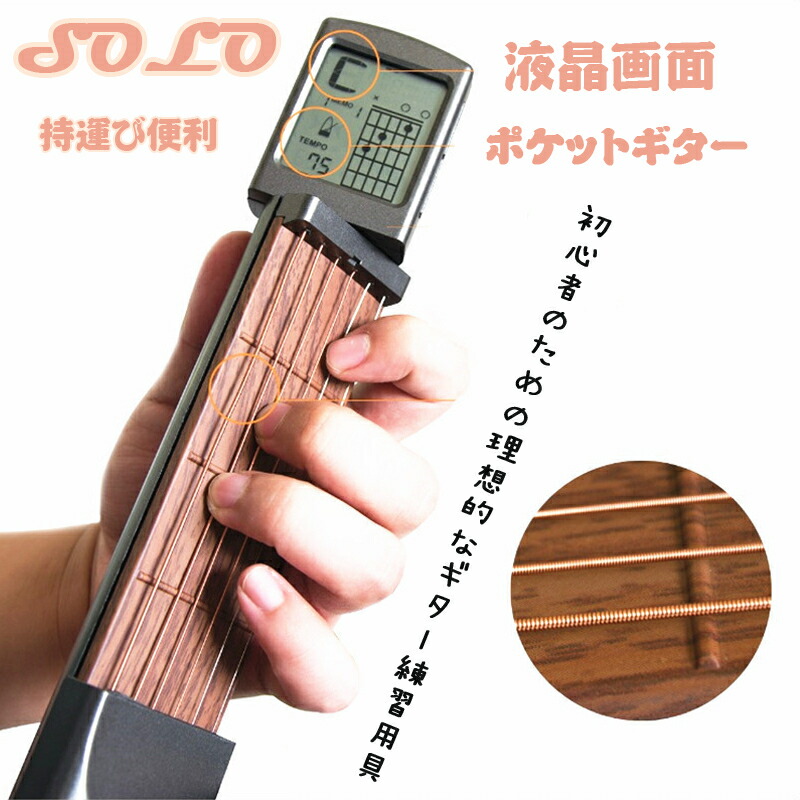 ポケットギター ポータブル 練習用 弦つき アコースティックギター 液晶画面 コード表示 持運び便利 初心者 専門者 練習